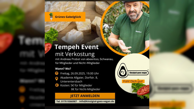 Am Freitag; den 26.09.2025 um 19.00Uhr findet ein Tempeh Event mit Verkostung mit Andreas Probst von abeentoo aus Schwanau in der Akadademie Allgaier in Unterentersbach statt.